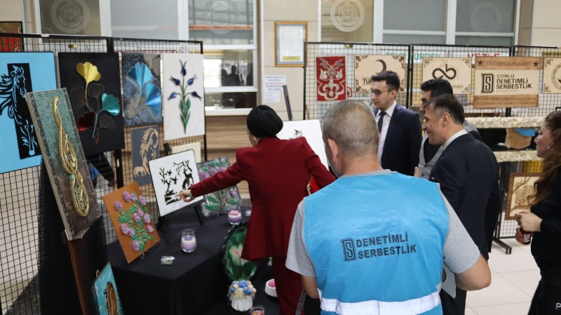 Çorlu Denetimli Serbestlik Müdürlüğü tarafından ihtiyaç sahibi yükümlülere destek olmak amacıyla oluşturulan Sosyal Market ile yükümlüler tarafından üretilen ürünlerin yer aldığı El Sanatları Sergisinin açılışı, Çorlu Cumhuriyet Başsavcısı Sayın Bilgehan YÜCEL, Çorlu Belediye Başkanı Sayın Ahmet SARIKURT, Tekirdağ Baro Başkanı Sayın Egemen GÜRCÜN, Çorlu Deri Organize Sanayi Bölge Müdürü Halil HIZ, Koruma Kurulu üyeleri, hakimler, Cumhuriyet savcıları, Çorlu Halk Eğitim Müdürlüğü yetkilileri, denetimli serbestlik ve adliye personelinin katılımıyla gerçekleştirildi.